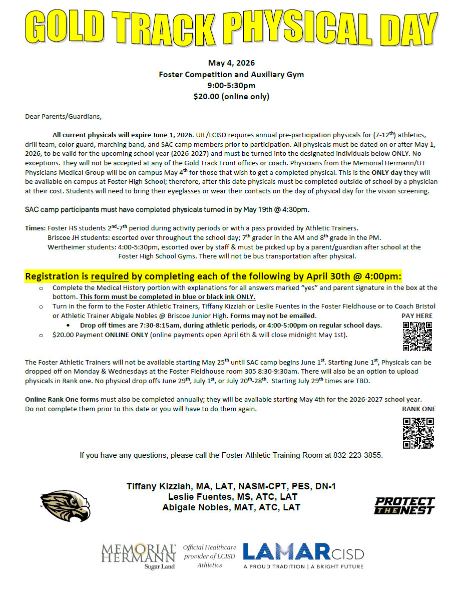 Eagle Update April 2, 2026 Easter Break School will be closed Friday, April 3-Monday, April 6. STAAR Testing Dates - Closed Campus Gold Track Physical Day!! Briscoe Athletics Ticket link for all at...